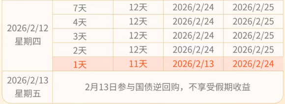 举例而言,如果投资者周四选择买入1天期的品种,则可享受11天的计息时间。